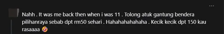 ‘This was me back then when I was 11. I helped my grandfather in displaying flags during the General Election as I could earn RM50 a day. Over time, I managed to earn RM150.’