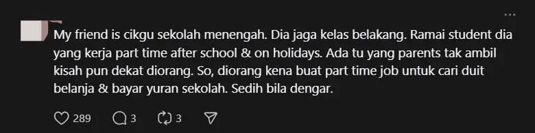 Another lamented that it was “pitiful” to see students having to work at such a young age, adding that it was the reason why some kids were more matured than the adults.