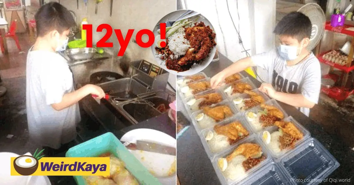 MIRI – Our primary school years are considered the best time of our lives as we did not have to worry about anything in the world. Most of us would spend our free time playing games with friends or watching cartoons. However, a 12-year-old Sarawakian boy followed his father’s footsteps in preparing nasi lemak and helps to sell it too.