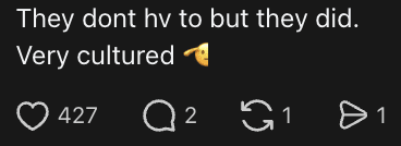 One commenter wrote, ‘They didn’t have to but they did. Very cultured.‘
