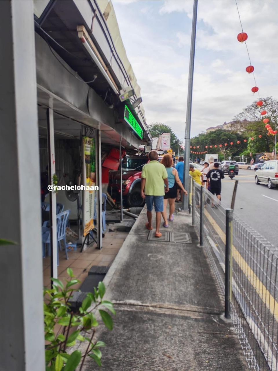 A reader named Rachel Chan told WeirdKaya that the incident took place at around 3.30pm yesterday (Jan 21), adding her mother was present at the time and that her stall was two steps away from the scene of the crash.