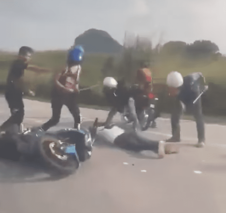 A 16-second video of the incident went viral on social media, showing a group of men fighting on the road using what appears to be rattan canes.