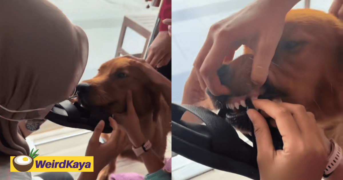 5 M’sian Vet Clinic Staff Work Together To Release Slipper From Golden Retriever’s Mouth