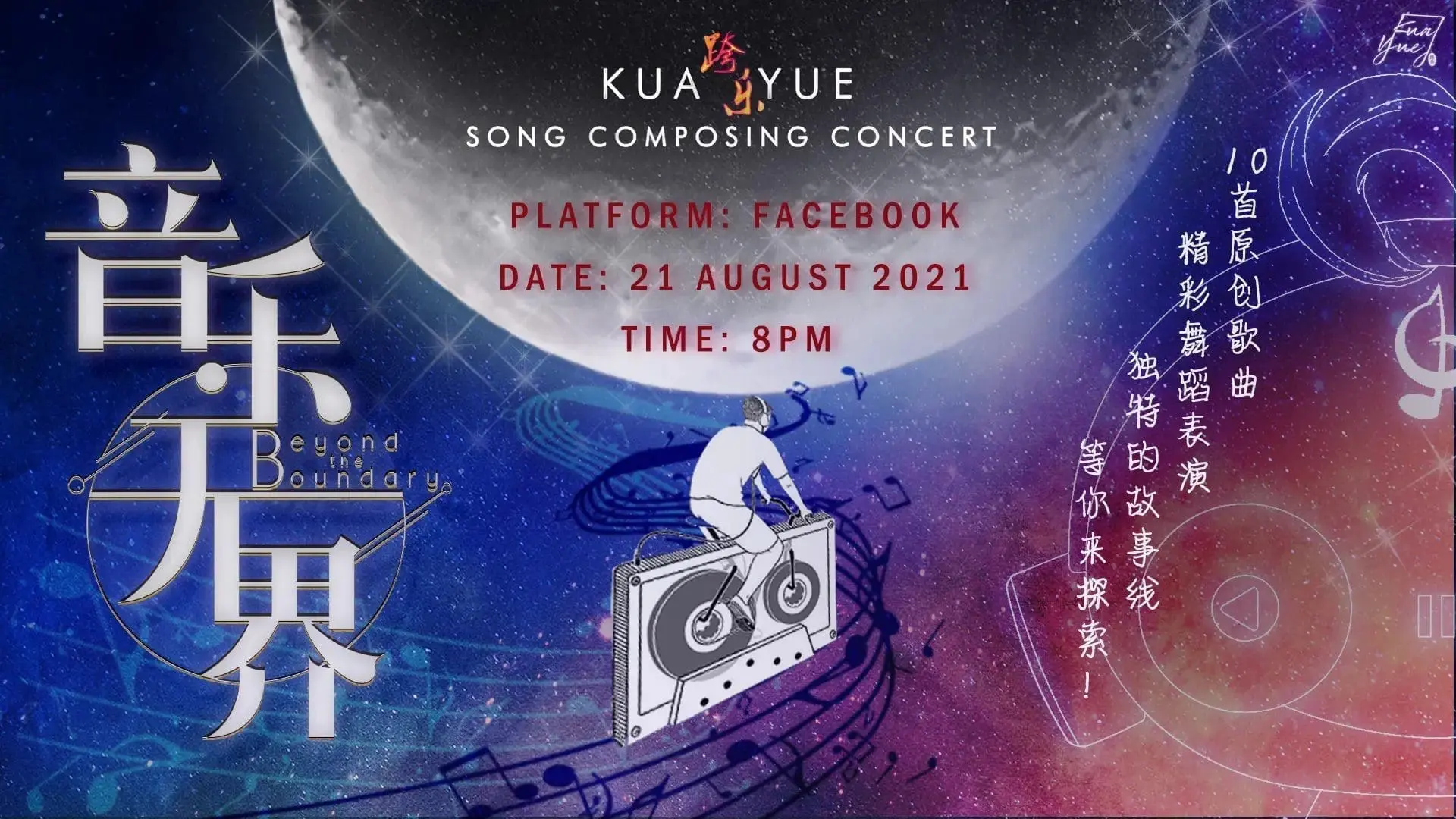 As a means to promote local music, Kuayue Song Composing Concert will be launching an online event. Titled “Beyond the Boundary”, they set a stage for local university students to display their talents. The concert is set to begin on 21 August 2021.