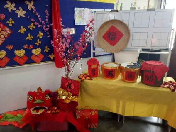 As such, every class is usually tasked with decorating the noticeboard with creative and eye-catching designs using discarded red packets. Winning calligraphies are also included as part of the decorations too.