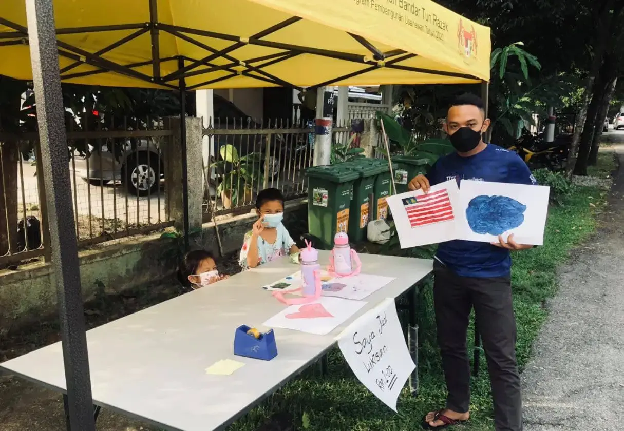 Much to Fadhil’s astonishment, his daughter earned RM 51 within an hour when residents of a local community bought six of her paintings.