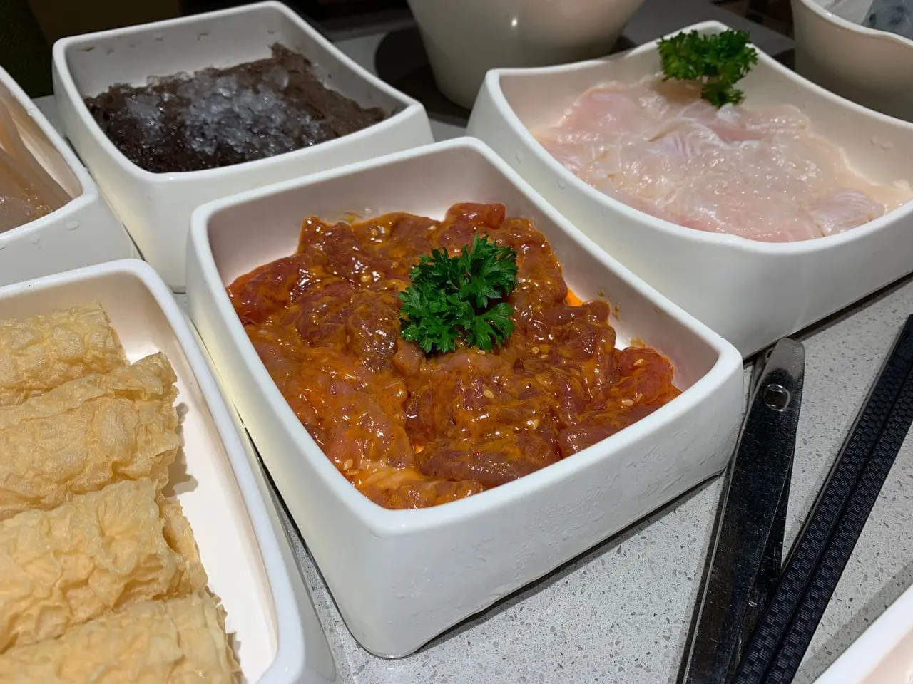As soon as you’ve been shown to your seat, you’ll first need to order your soup base. Haidilao has several renowned soup bases that are quite delicious such as chicken soup with pork tripe and black pepper, curry laksa, tom yum, mala, etc.