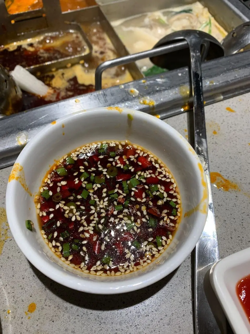 One recommended condiment to go with it is their unique seafood sauce – a concoction of Haidilao’s home recipe soy sauce, fried sesame, Thai chilis and coriander. The waiter will also serve the shrimp after cooking it at the table for you.