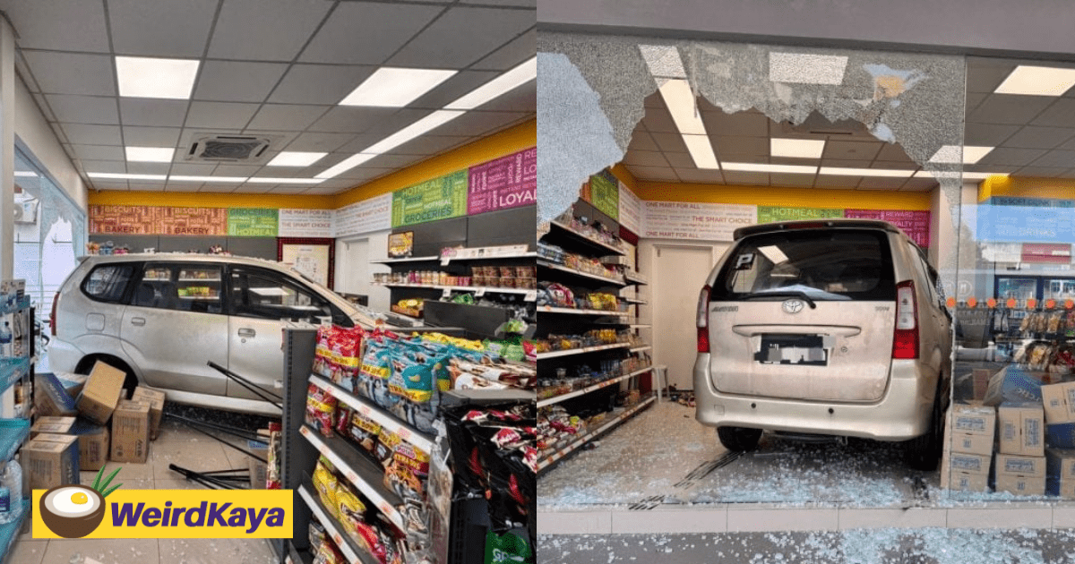 Miraculously, the man didn’t suffer any injuries from the crash and even managed to reverse his car out from the mart.