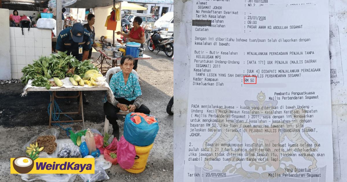 A netizen recently took to social media to ask for the public’s help in assisting an elderly woman who was issued a fine by the Segamat Municipal Council (MPS).