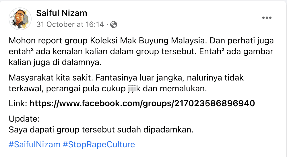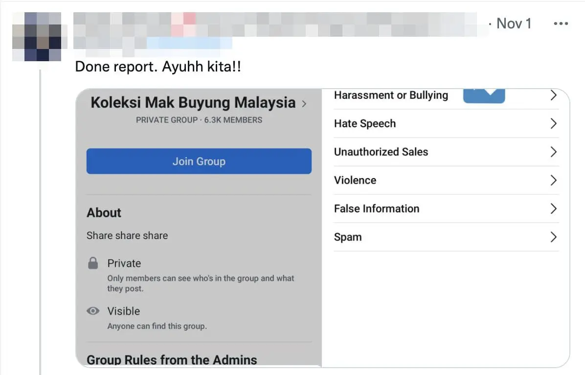 In a tweet dated last Sunday (Oct 31), Ain expressed her disgust over the group named ‘Koleksi Mak Buyung Malaysia’, calling their actions “unbelievable and repulsive”.