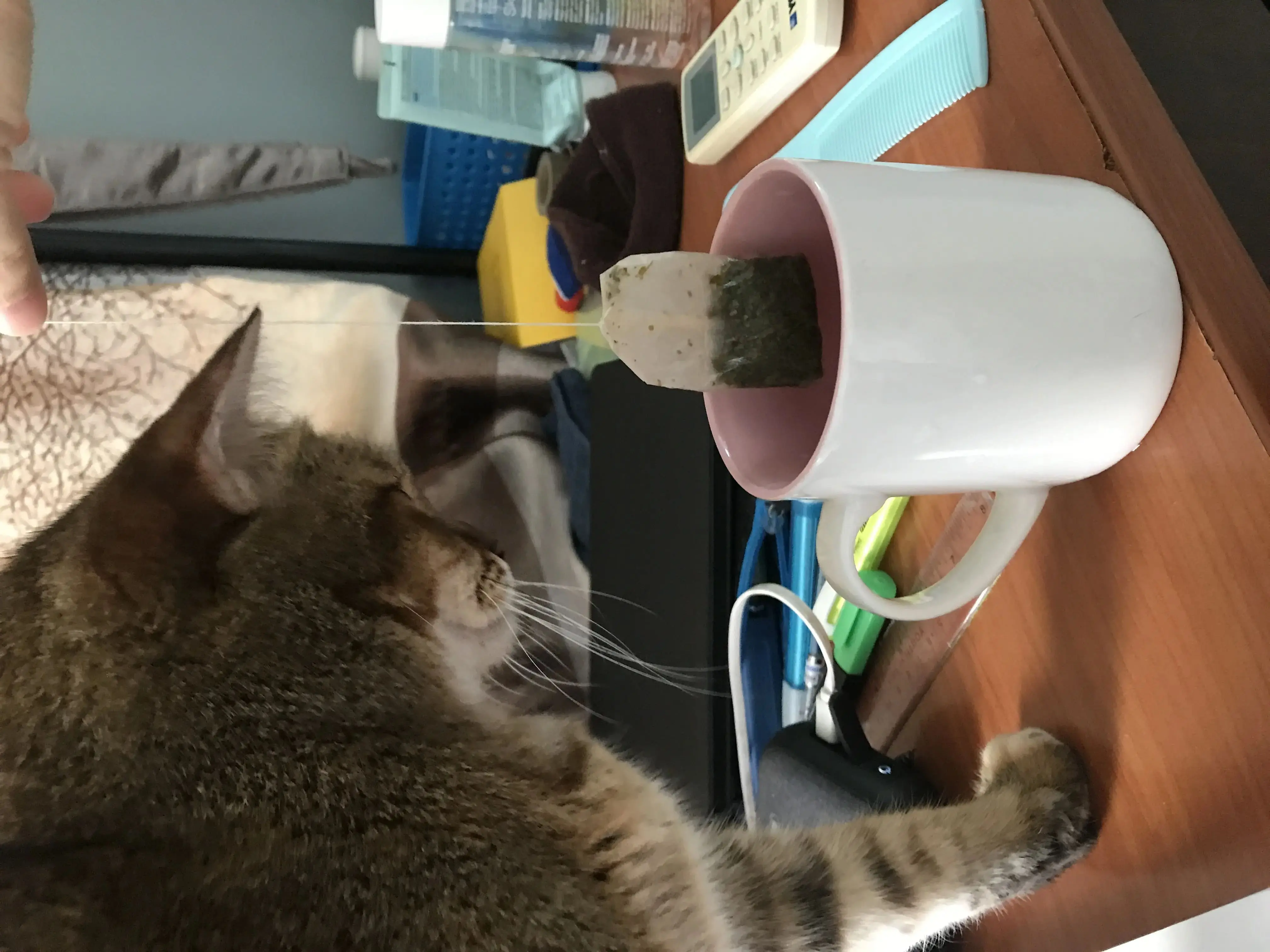 Realising that I wasn’t making much inroads into my pet’s world, I decided introducing my world to her instead. Needless to say, she has shown great interest in it, especially towards tea bags.