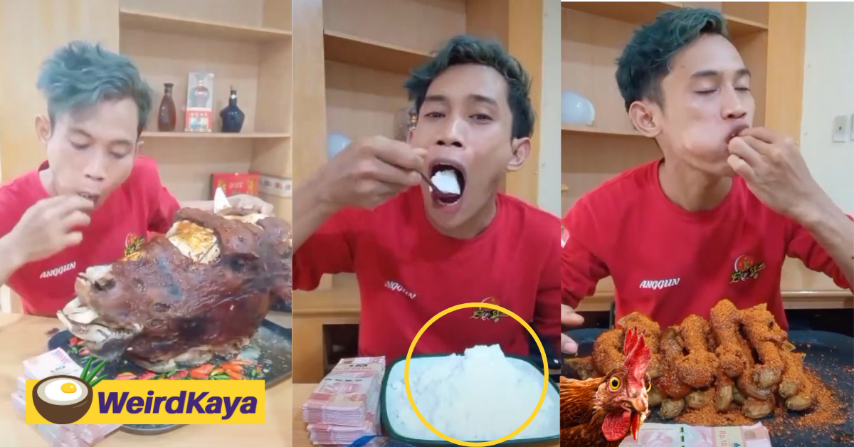 Mukbang is an online broadcast where one would film him/herself devouring a heap of food for the audience’ entertainment. While South Korea is widely credited to be the birthplace of mukbang starting in 2010, it has become an online trend worldwide. However, Anggun’s sessions come with a twist: he is paid a certain amount of money or expensive prizes when challenged to embark on another eating spree.