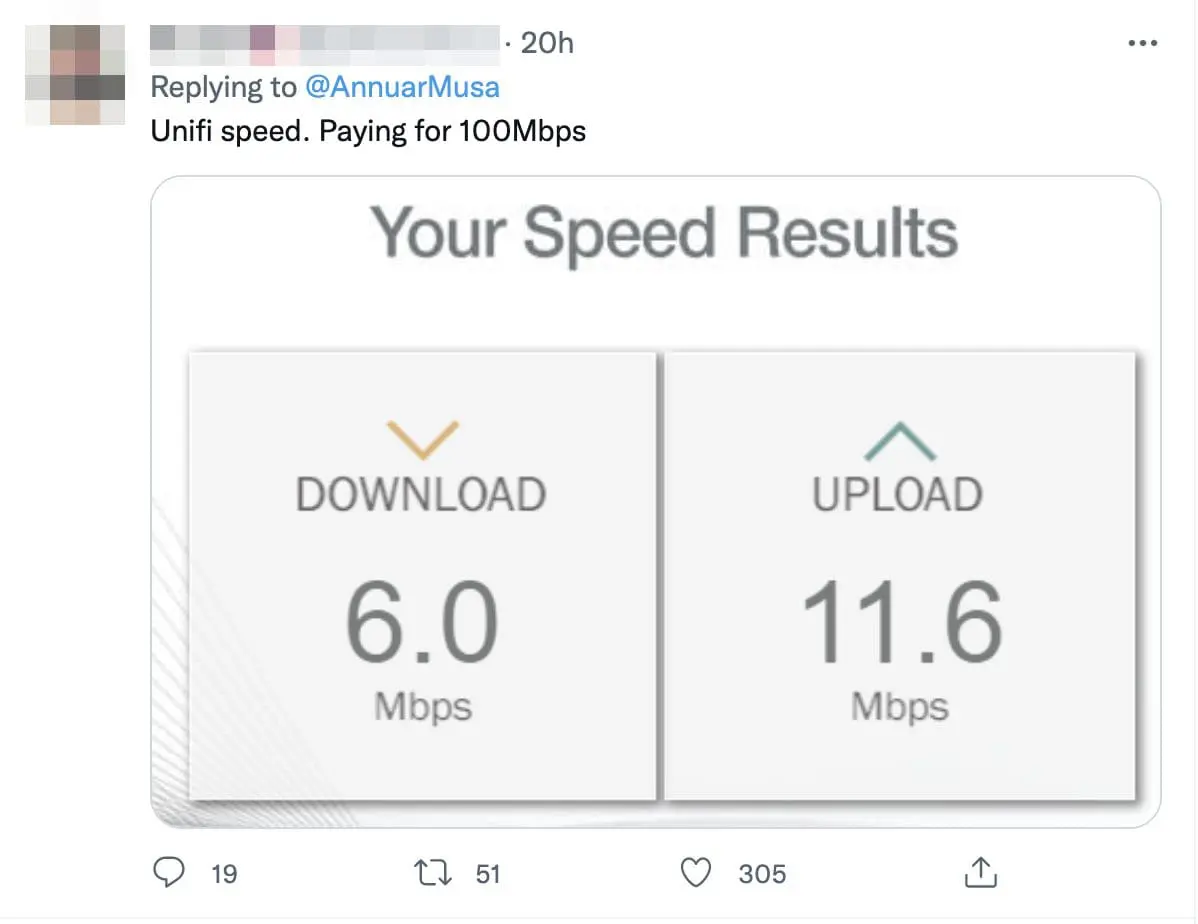 One complained how he was paying for Unifi with 100Mpbs but had to put up with its sloth-like speed.