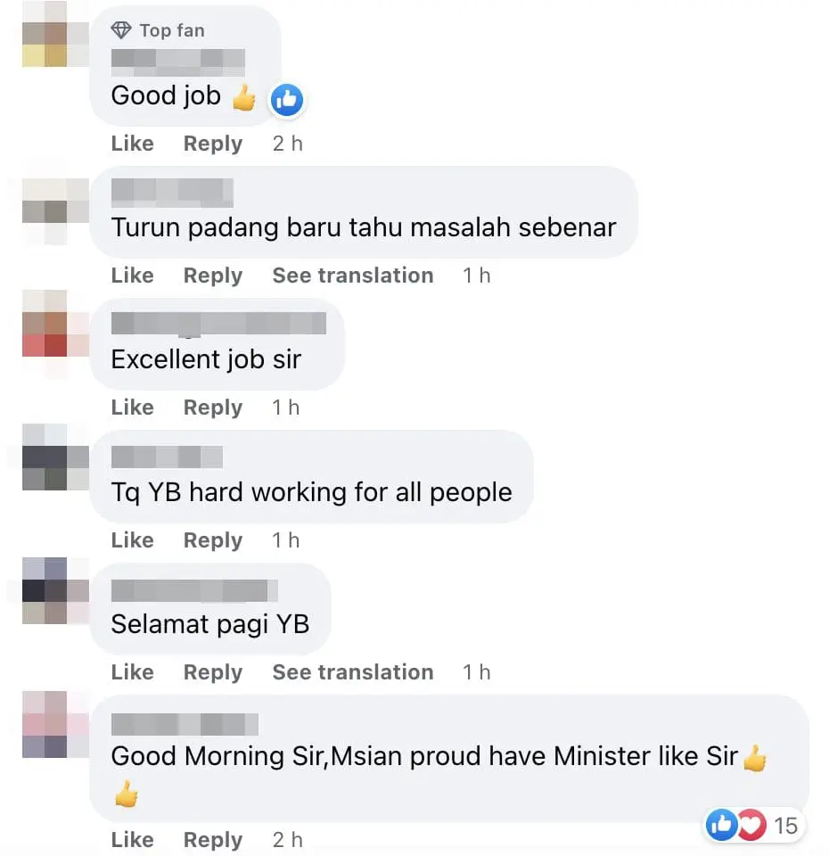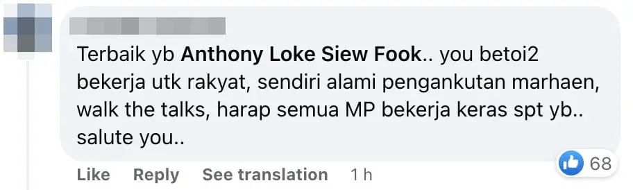“You really work for the people, experience the transports, walk the talks. I hope all the MPs can be as strict as YB. Salute you.”