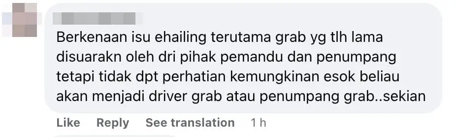 “Regarding the e-hailing, especially Grab’s issue that has been brought up for a long time by the drivers and passengers not attended by the ministry. Maybe he’ll try to experience a day as an e-hailing driver or passenger tomorrow.”