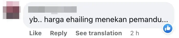 “YB, the e-hailing price is still pressuring the drivers.”