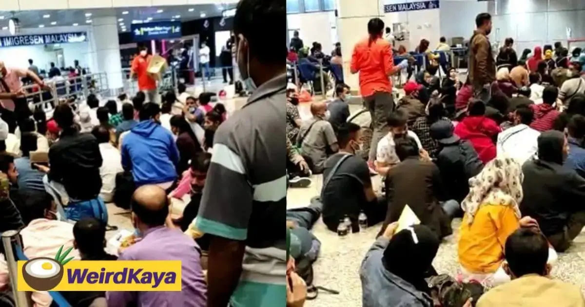 Horde of immigrants crowd at KLIA while awaiting for their flight home