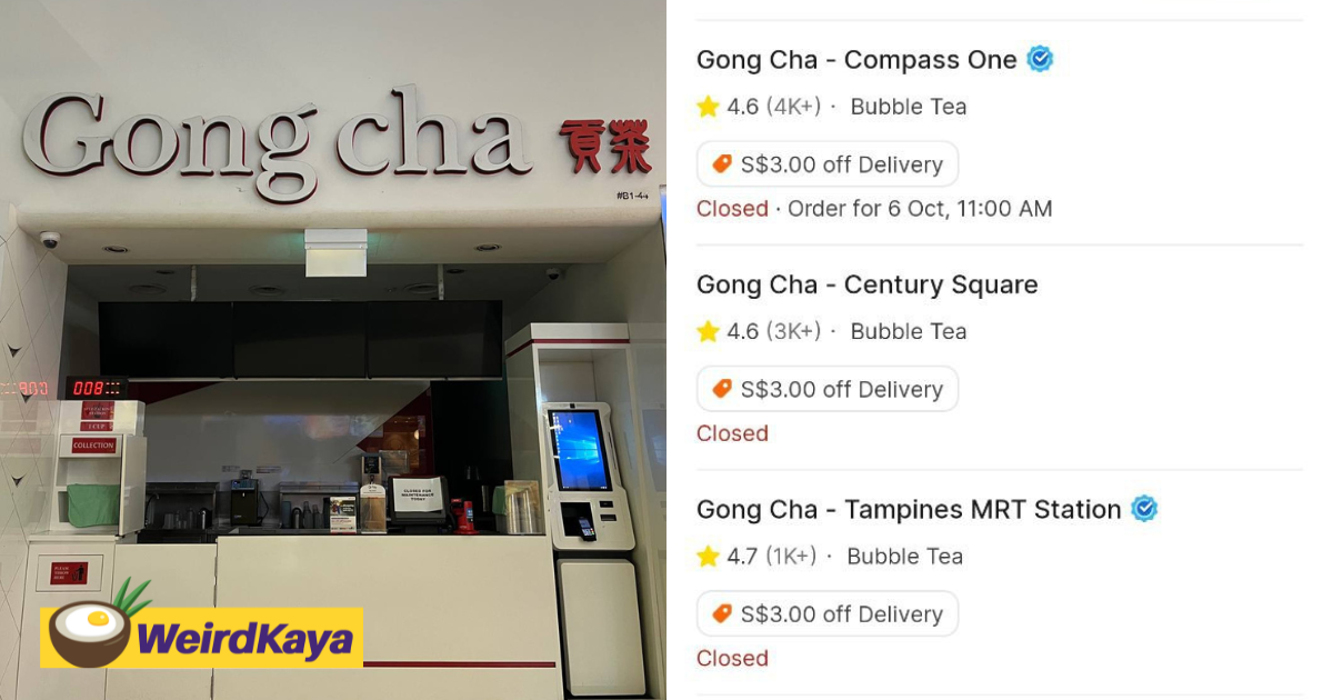 Even on GrabFood, Gong Cha outlets were all showed as “closed.”