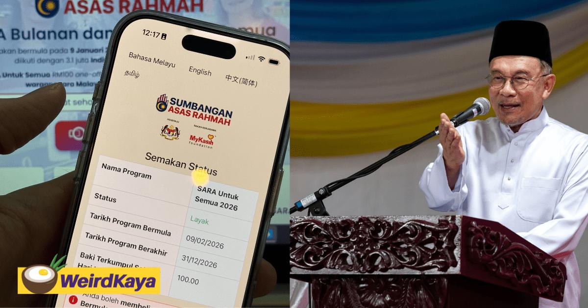 M’sians Aged 18 & Above Will Get RM100 SARA Aid On 9 Feb & Here’s How To Check Your Balance