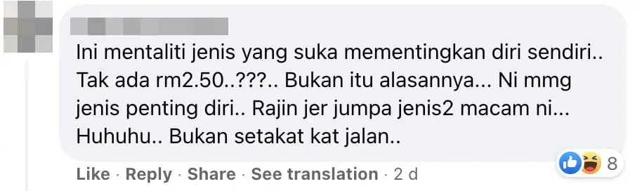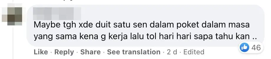 Some said that she lost RM300 just to save RM2.50 on toll fees.