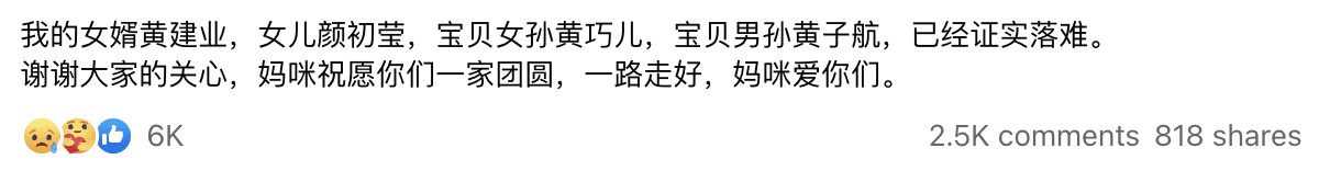 Beh Su Lee, a victim’s family member who had been waiting for her granddaughter to be rescued, posted a mourning post on Facebook and confirmed that her daughter’s family of four has been confirmed dead.