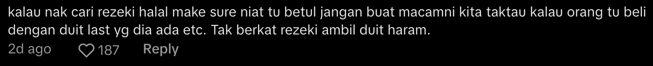 “Don’t do things like this—we never know if someone spent their last bit of money to buy it, etc. There’s no blessing in money earned dishonestly.”