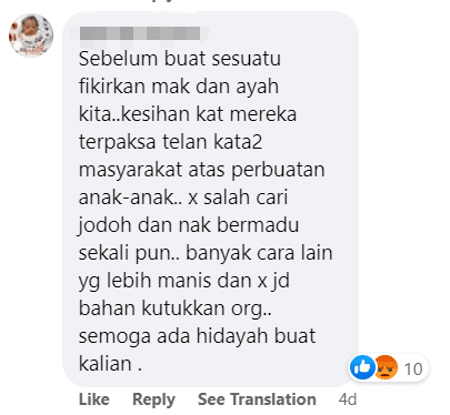 “Before doing something, please think about your mother and father. Pity them for having to get criticism from the public over their children’s actions. There’s nothing wrong with finding a match or getting married to the same man. There are many other ways of finding love which are more genuine and won’t turn stir controversy.”