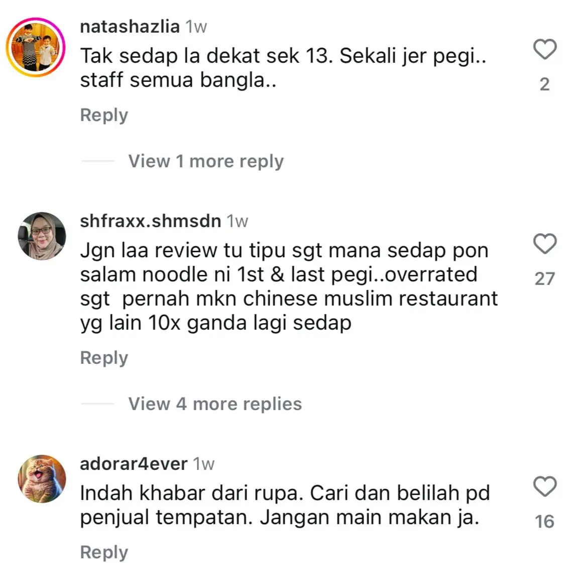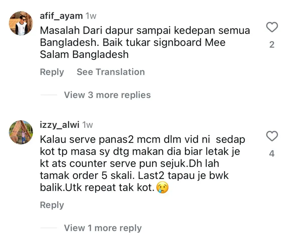 Menjengah ke ruangan komen, warganet memberi kritikan negatif terhadap makanan tersebut dan ada juga yang tampil mempertahankan restoran terbabit.