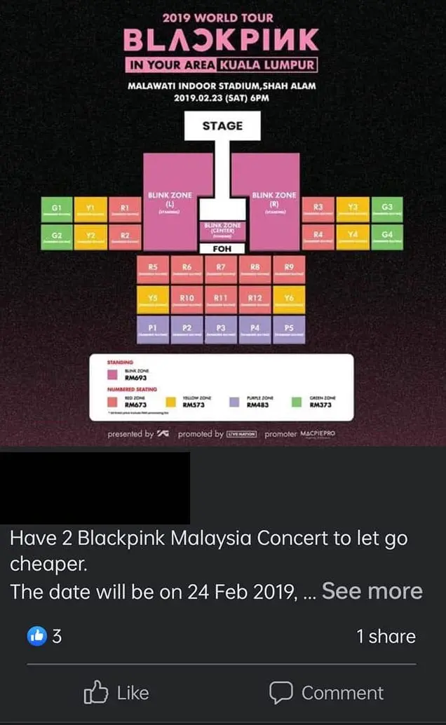 According to a photo circulating online, the highest price for BLACKPINK’s Malaysia Tour was only RM693.