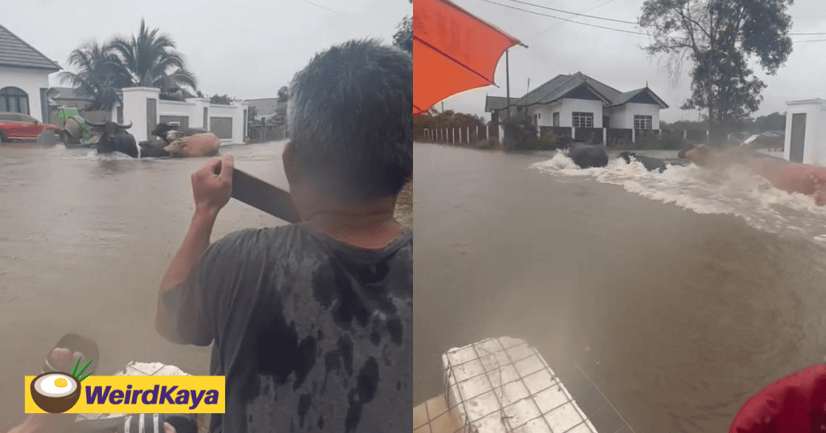 Malaysians navigating floodwaters on a self-made boat were in for a surprising and hilarious encounter with some cheeky buffaloes. In a surprising twist of events, a group of Malaysians, navigating a self-made boat through floodwaters, were greeted not by more flood victims or rescue teams, but by a herd of buffaloes and cows! The group … Continue reading Buffaloes Rush Towards M’sians Trying To Scare Them Off, Turns Out It Was Just A Prank