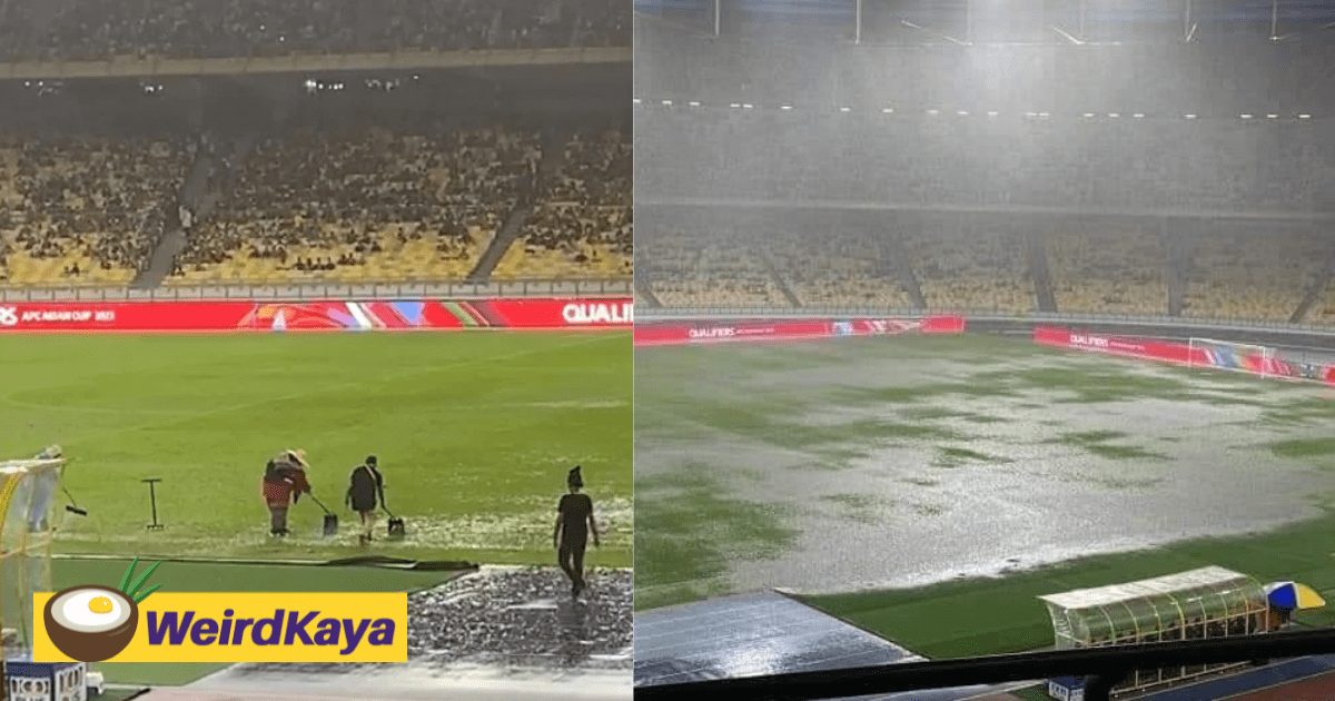 However, what caught the eyes of netizens was the laughable methods used by the staff of the Bukit Jalil Stadium, who used dustpans, brooms, and a water hose to remove the excess water, raising serious questions about the drainage system.