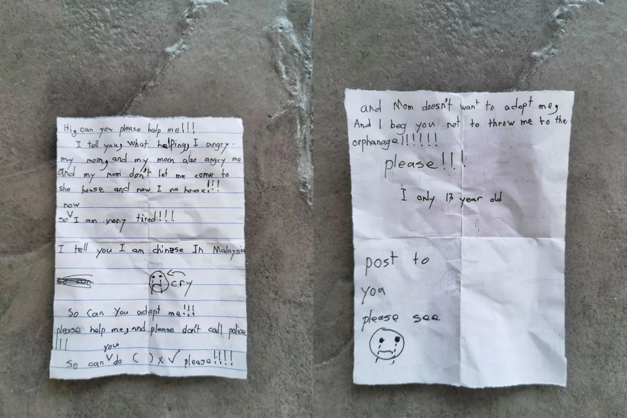 BANTING: A 13-year-old teenager ran away from home due to a family dispute and scribbled a letter begging to be adopted from someone in the neighborhood.