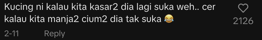 “This cat actually likes it when we’re rough with it… but try being affectionate and giving kisses, and it won’t like it 😂”