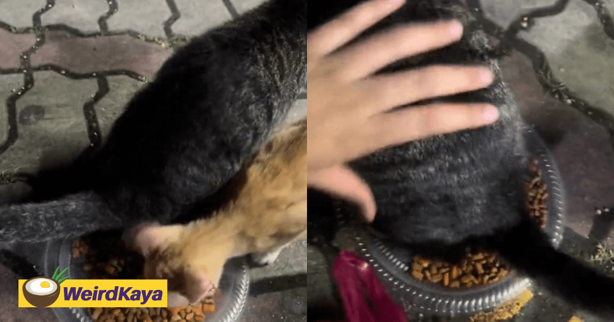 Cat tries to poop on cat food offered by kind M’sian woman