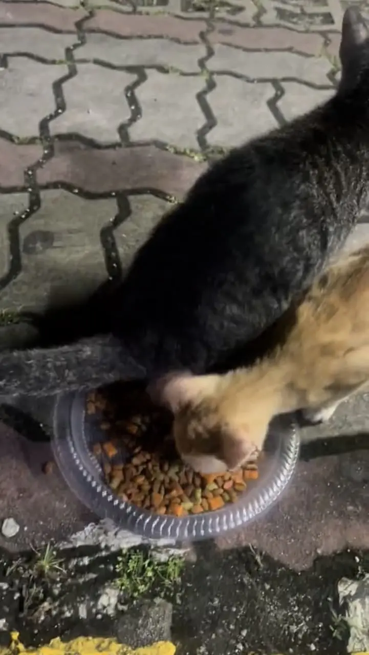 In a Tiktok video posted by user @mays4r44, shared a hilarious video of a stray cat trying to defecate in free food offered by a kind stranger.