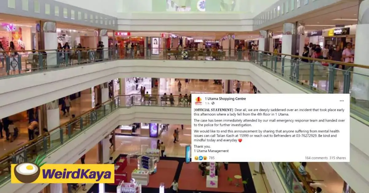 Lady fell from 4th floor in One Utama Shopping Centre, now under police investigation