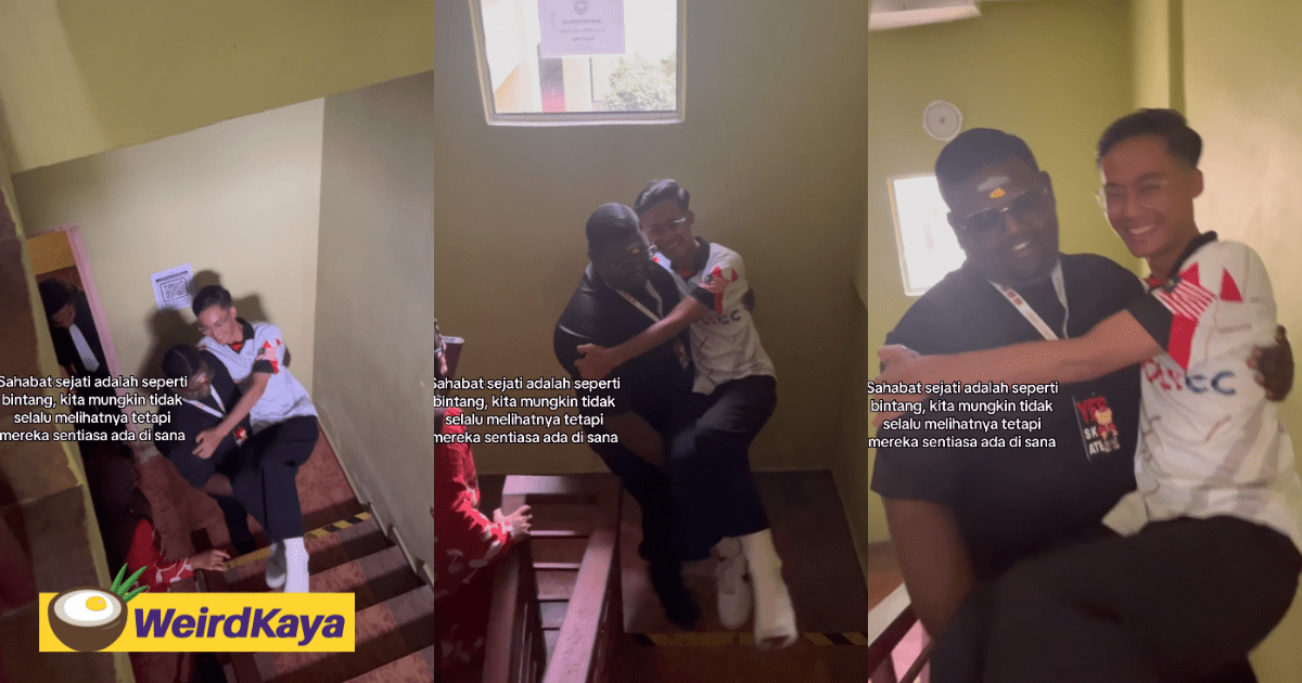 ‘I Got You, Bro’ – M’sian Student Carries Injured Friend Up the Stairs, Melts Netizens’ Hearts