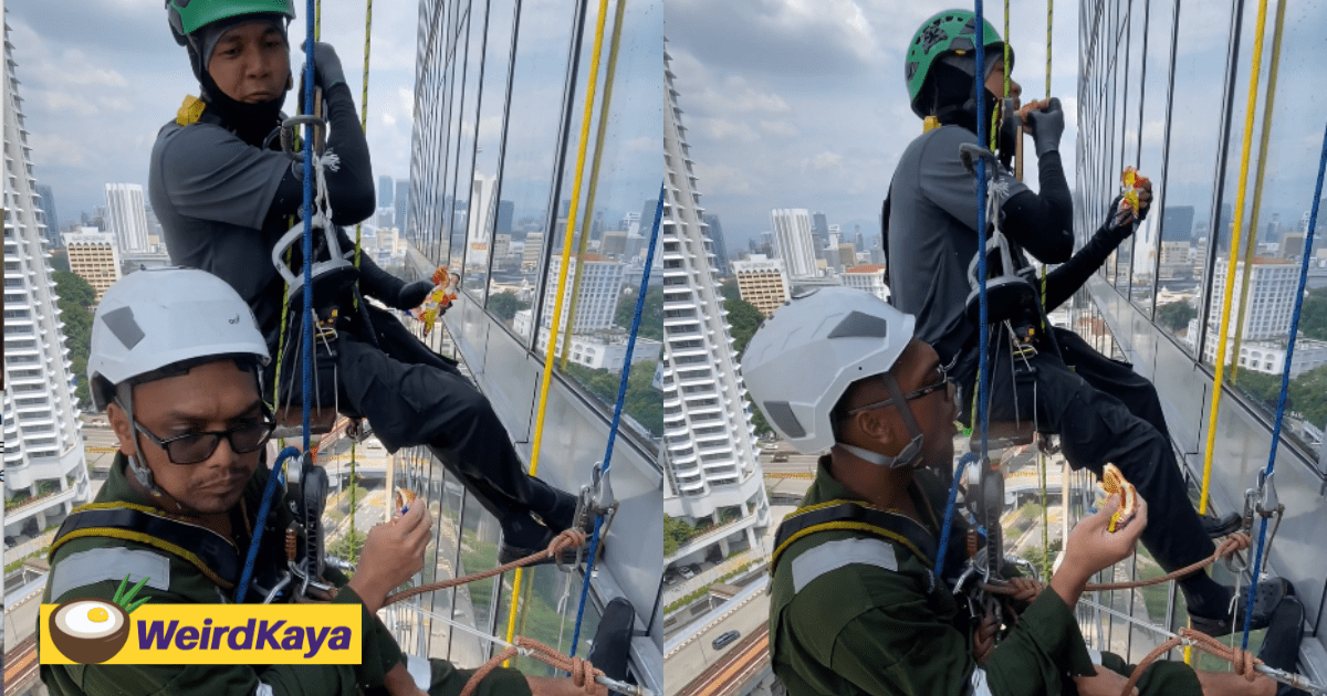 M’sian Workers Casually Eat Buns While ‘Hanging Out’ Mid-Air Outside Building