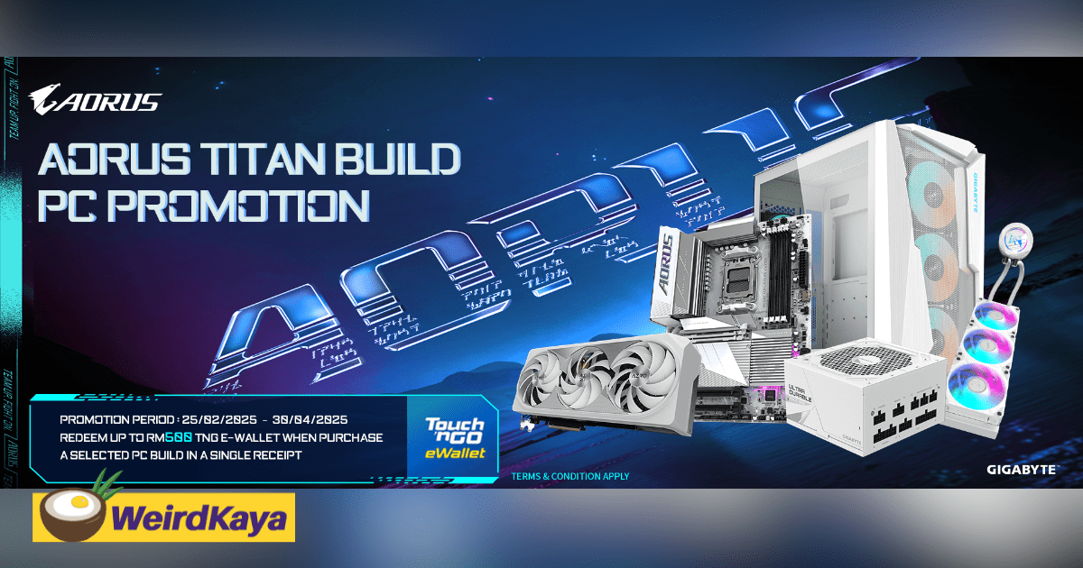 Customers purchasing eligible PC builds with AORUS and GIGABYTE components can redeem up to RM500 in TnG eWallet credit.