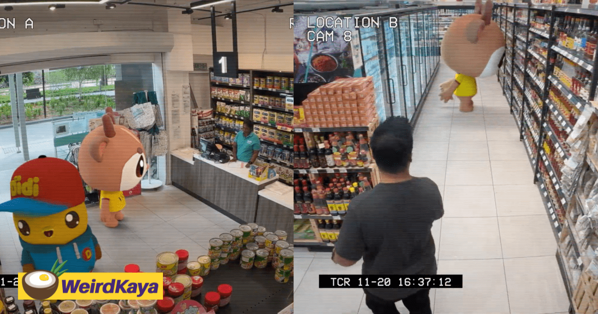 Mart check: snacks ✅, groceries ✅, giant mascot?? 🛒😳