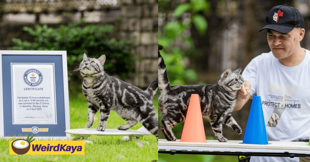 Talented Cat From China Purr-fectly Sets Guinness World Record For Fastest 10-Metre Skateboarding