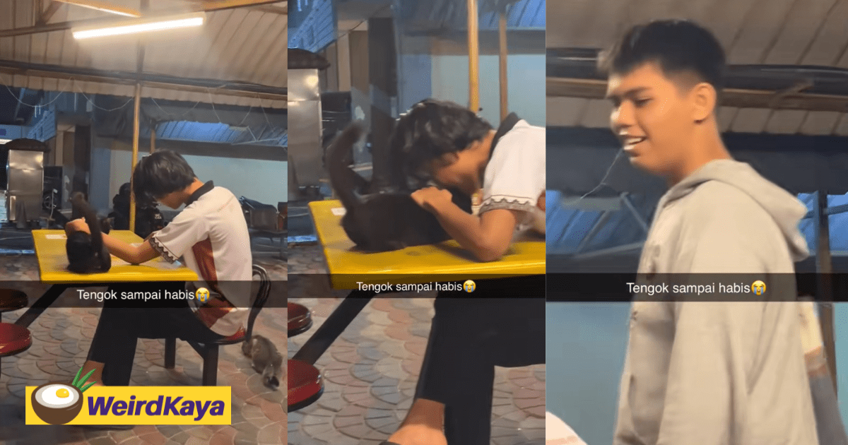 M’sian Man Playfully Nibbles Cat Which Tried To Have A Bite Of His Meal