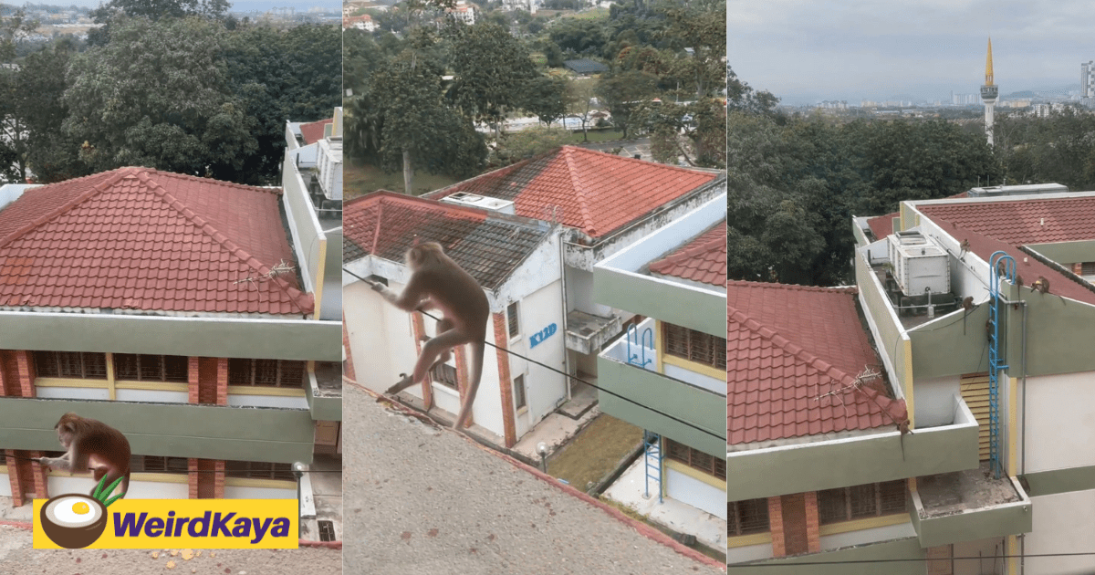 ‘Normal Day In UKM’ – Mischievous Monkey Climbs Down Electric Cable & Has No Single Fear