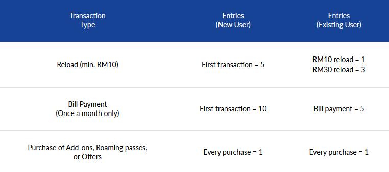 You will only need to download the Celcom Life app and perform any of the transactions below to be in the running to win a prize!