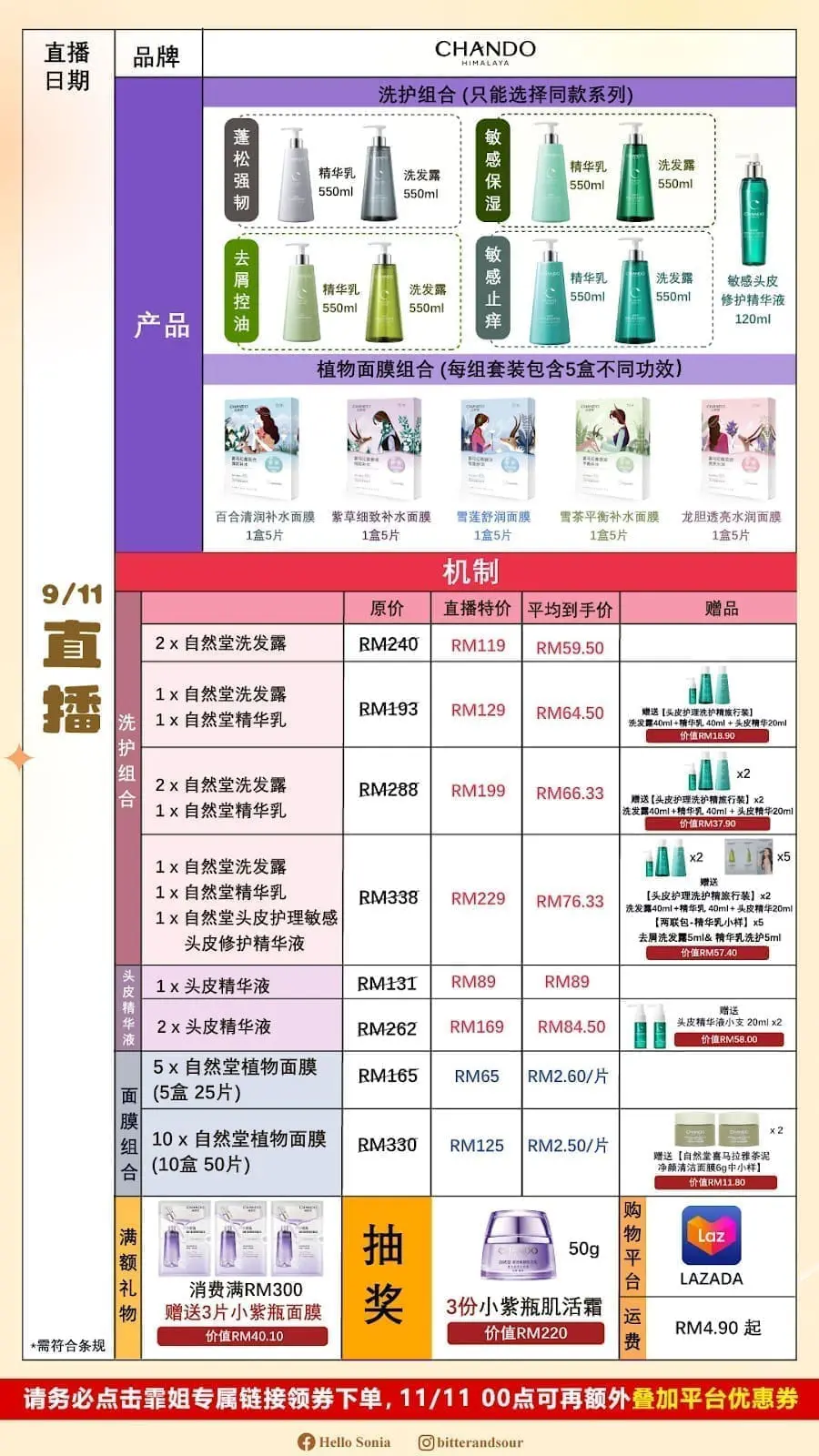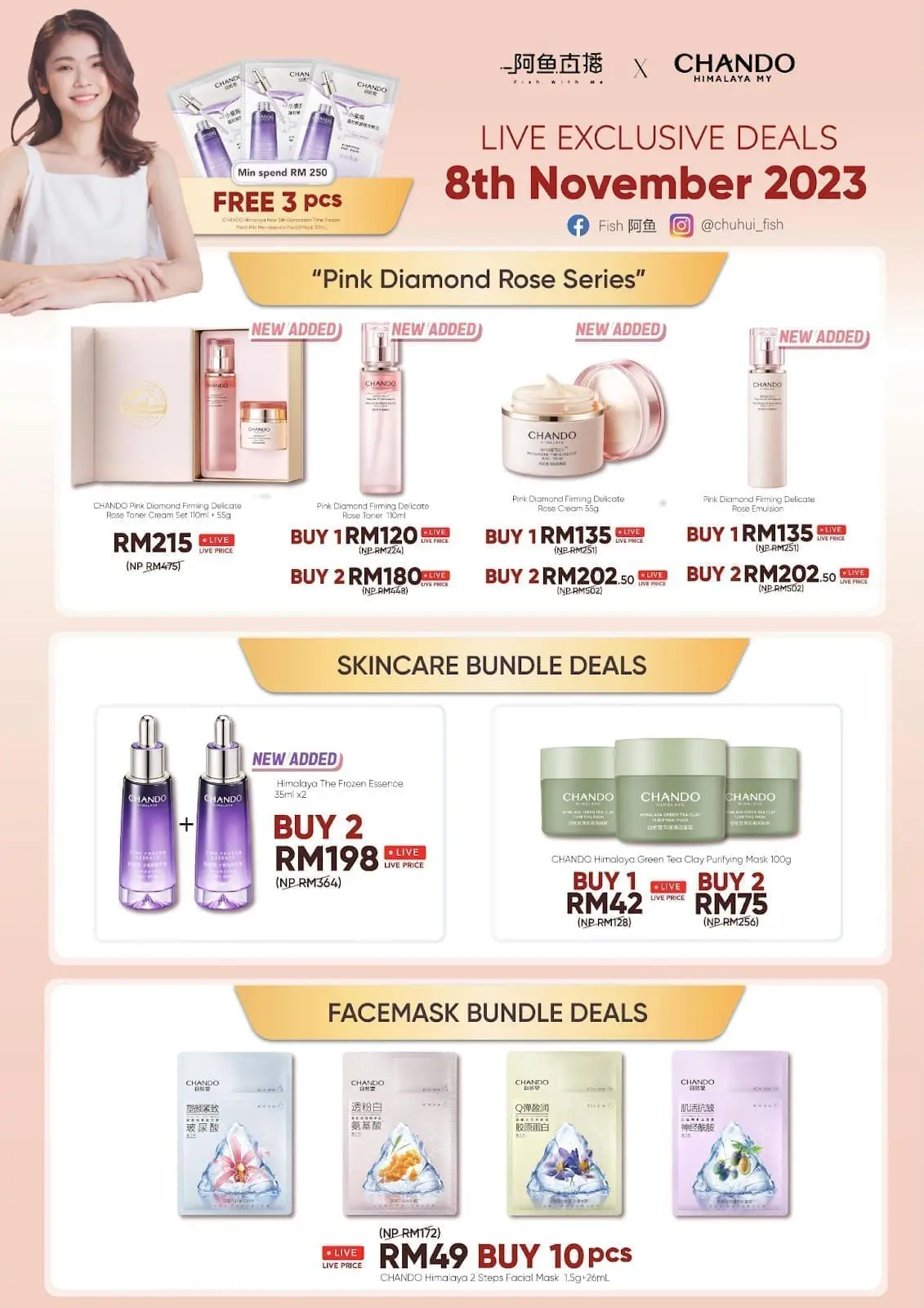 During the 2023 11.11 sale, Chando is not only offering incredible deals in Malaysia but has also partnered with top Malaysian live streamers to showcase their star products. These collaborations allow consumers to understand the ingredients and benefits of Chando’s products clearly, offering them at the lowest prices ever and providing a unique shopping experience.