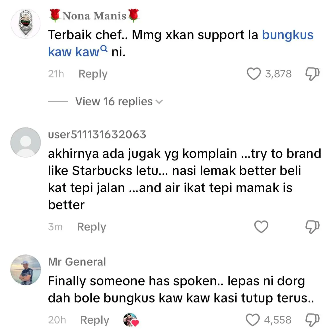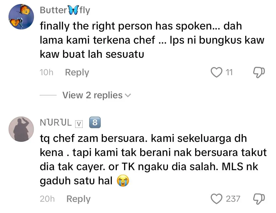 Finally the right person has spoken. Dah lama kami terkena chef, lepas ni bungkus kaw kaw buat lah sesuatu.