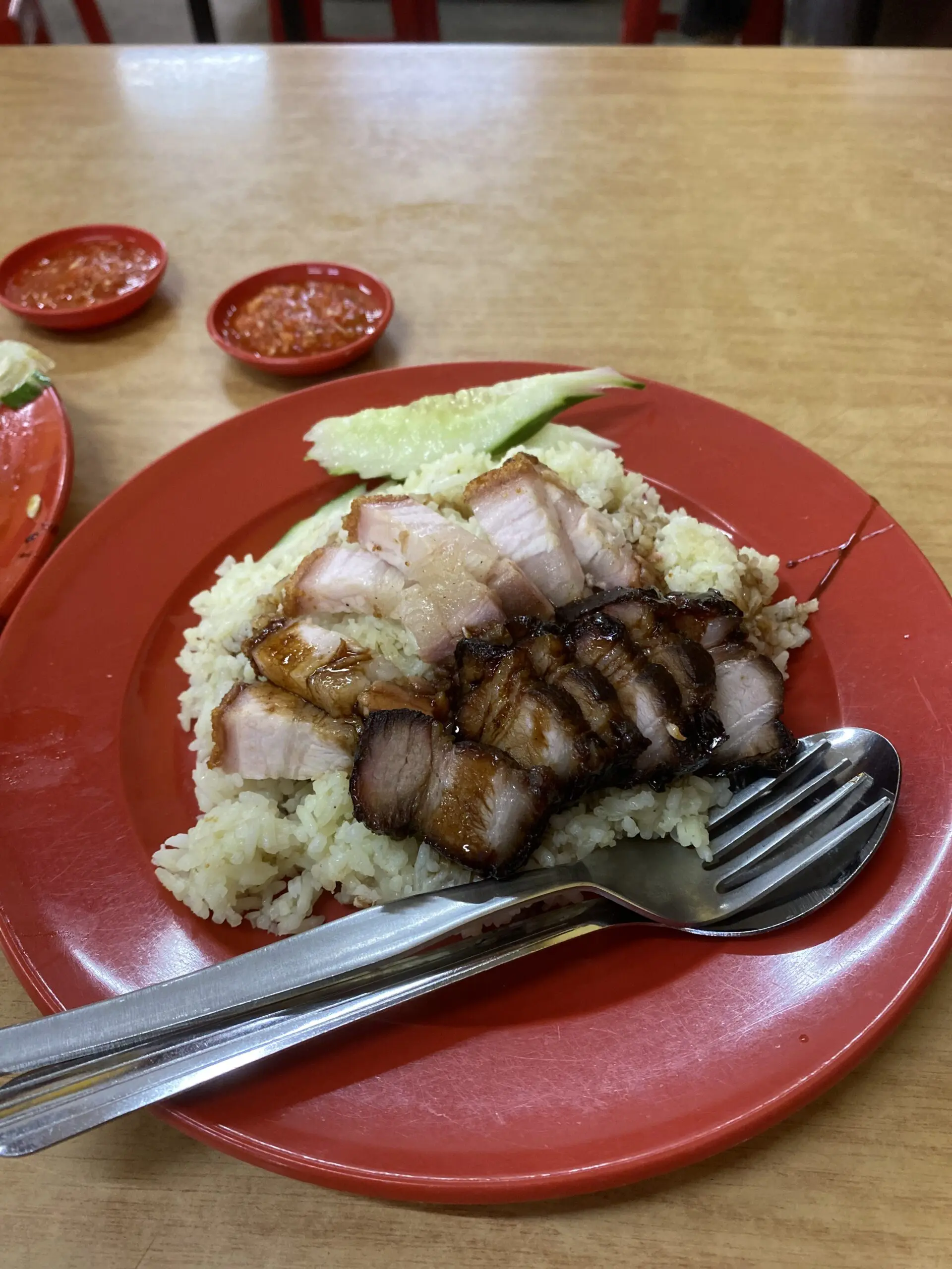 Don’t forget to try their chili sauce to serve alongside your char siu rice. It adds an extra punch to the meal and will leave you craving for more.