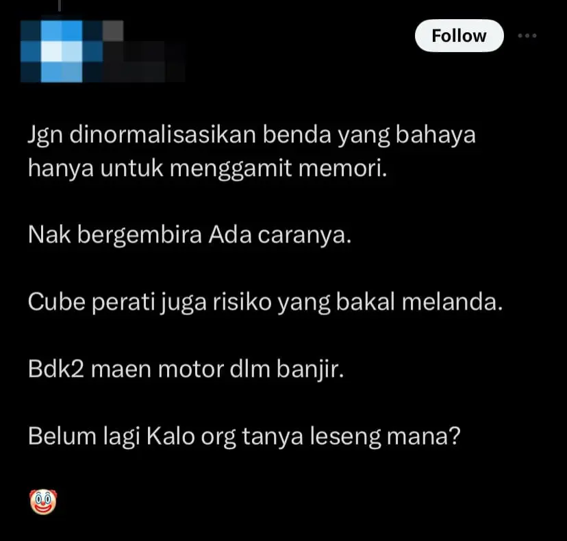 Accompanied by a 19-second video depicting two men pulling a young boy seated on a water storage tank cover through floodwaters on a motorcycle, the post showcases Azman, the state Agriculture, Agro-based Industry, Food Security, and Commodities committee chairman, wading through ankle-deep floodwaters with a smile on his face.