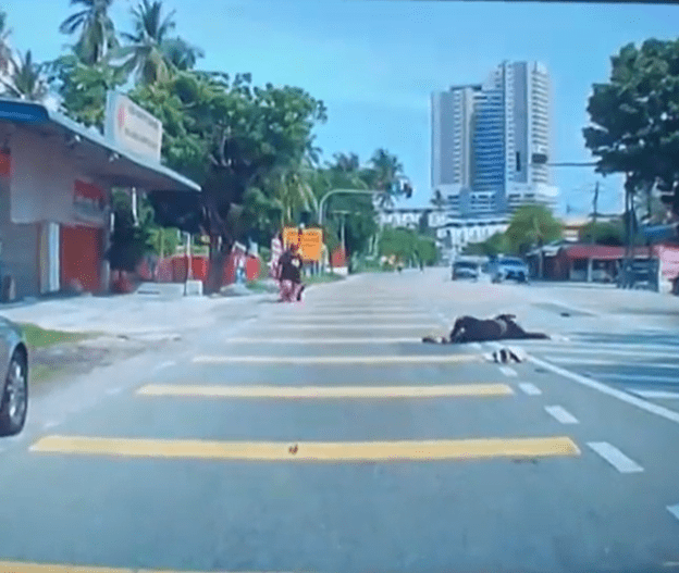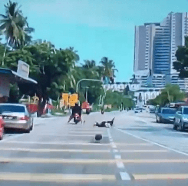 In a dashcam footage which was posted by Malaysia Gazette on Twitter, it showed the woman and a man riding a motorbike along a road at Teluk Kumbar.